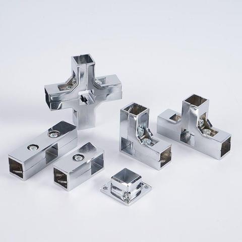 Camiseta de tubo cuadrado soldado, sujetador de cuatro vías y dos vías, accesorios de hardware para muebles, Conector de estante